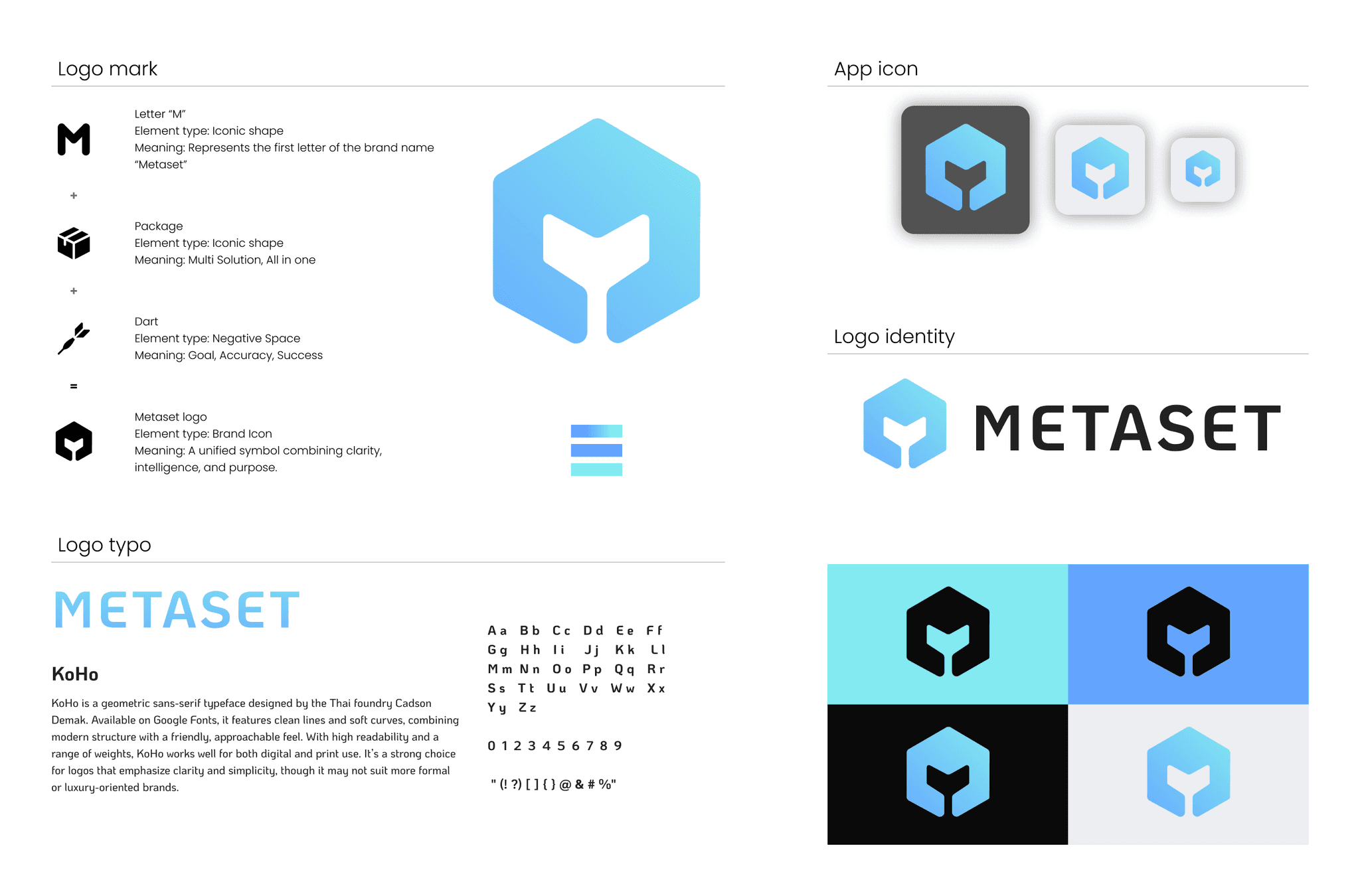Alongside the product redesign, I also reimagined Metaset’s brand identity — creating a logo and visual system that reflect its core values: clarity, trust, and smart simplicity.