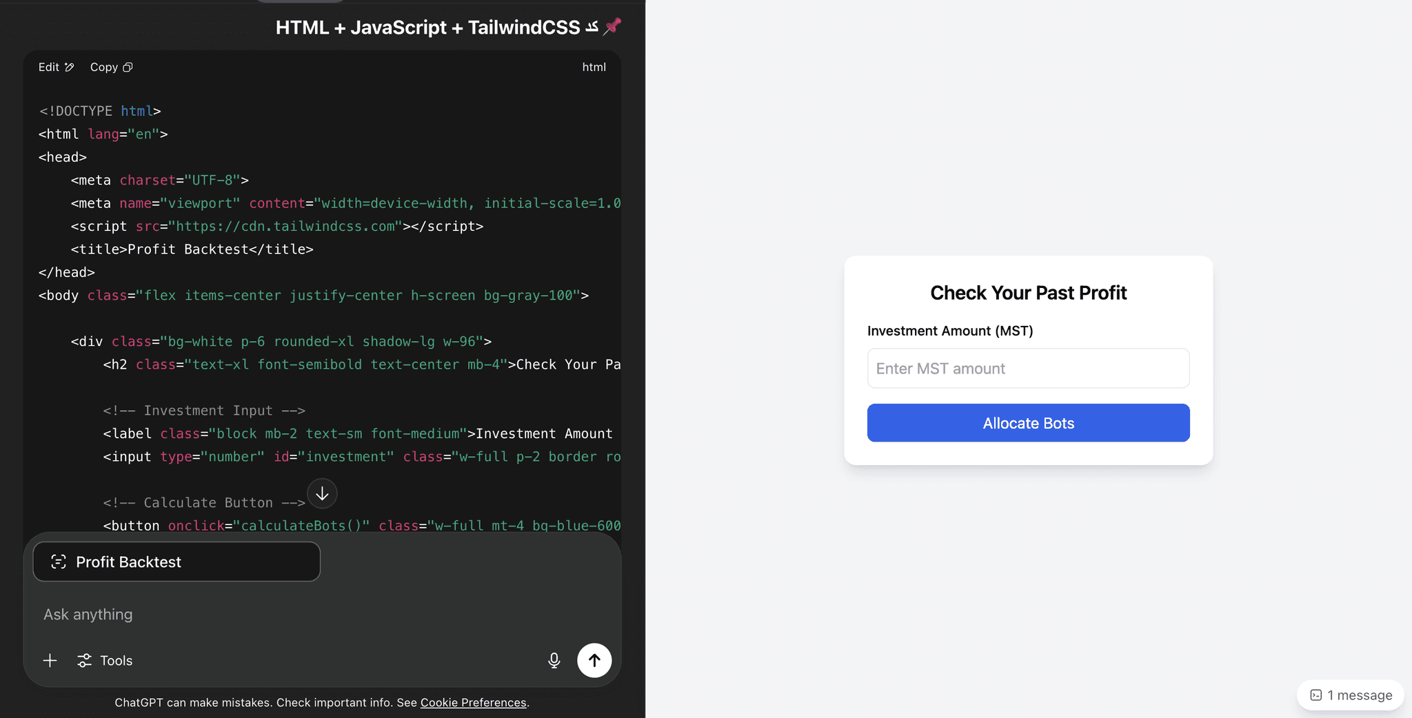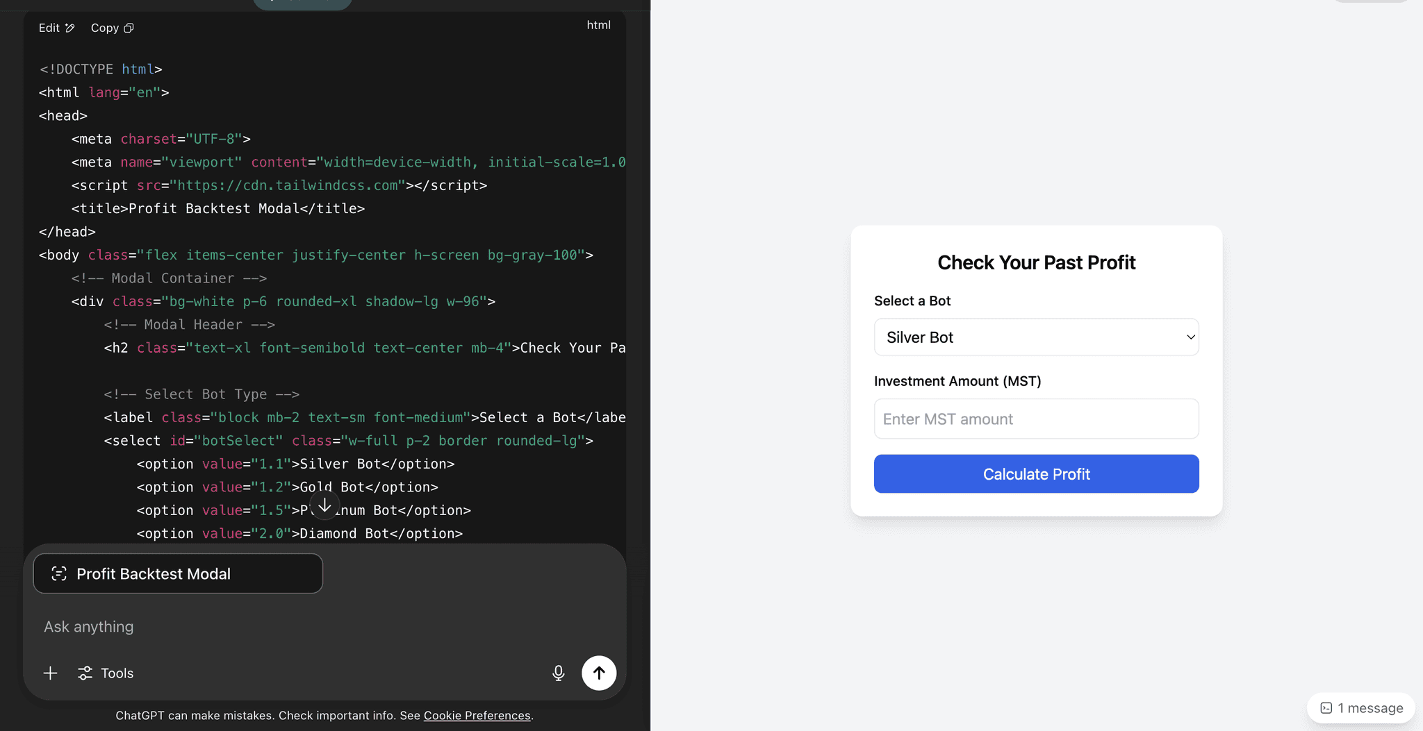 ChatGPT (HTML code generation)