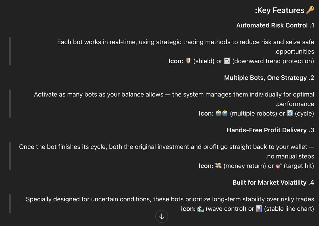 I mapped the full journey, from onboarding to bot activation to tracking and withdrawal, making sure users always knew: